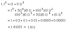 (4) Using the binomial theorem to find 1.1 to three decimal places, we see that