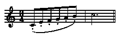 12.1. The sign C is used for a slur extending over two, three or four notes, and is placed after every note of a phrase except the last.