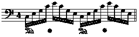 20.9. When several measures are repeated, and the pedal is changed between the measures, the measure repeat may be used, the signs for the depression and release of the pedal being marked where necessary; but great care should be exercised in this combination of pedalling signs with repeats, and it is better to sacrifice the repeats when there is any possibility of confusion or error.